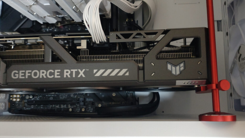 RTX5070tiと換装してみましたが、RTX5090の厚みのせいでMサイズのGPUサポートステイが使用できませんでした(泣)