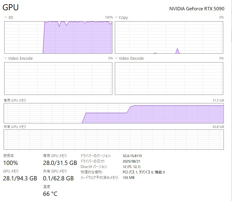 生成AI用途でもVRAMが32GBあるので快適になりました。