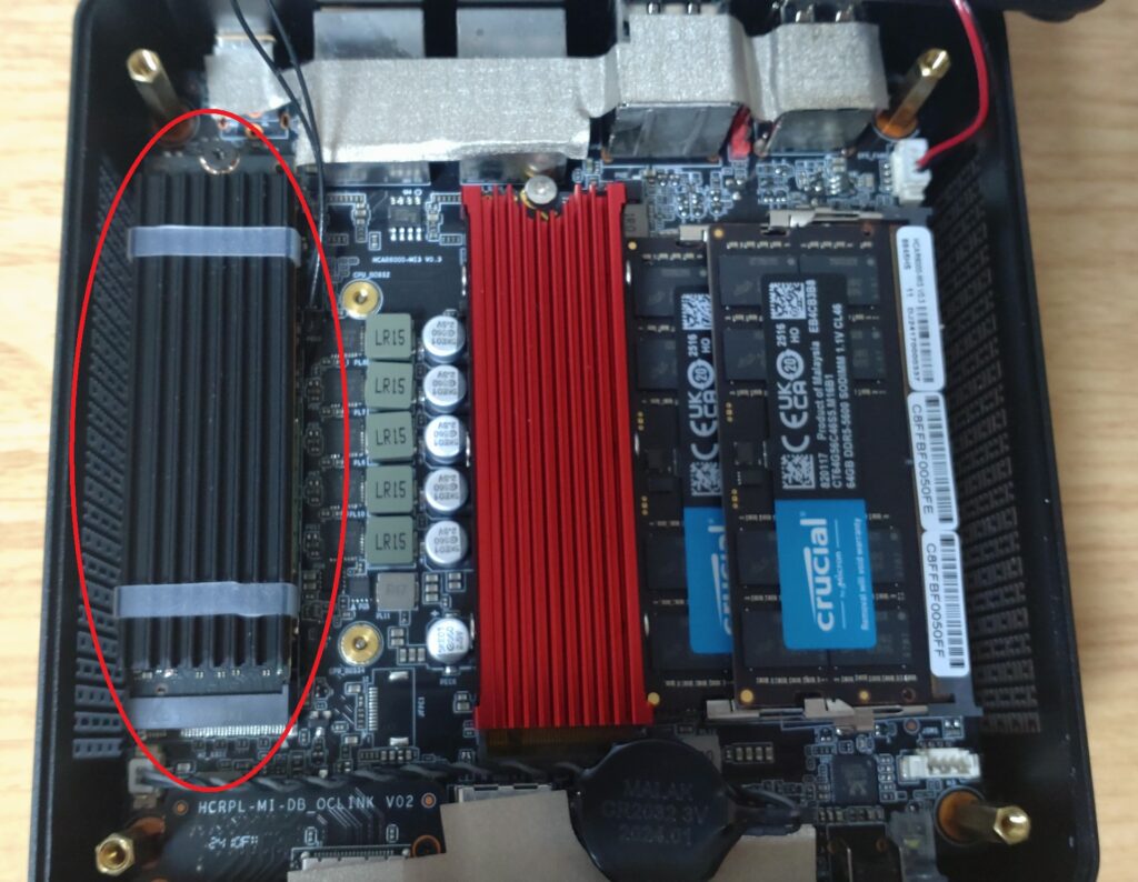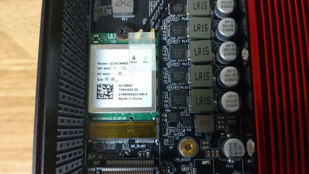 WiFiモジュールは下写真左側のOS用に使用しているSSDの下部に装着されています。