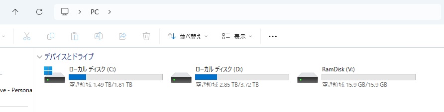 ※余剰メモリ領域を利用してRamDiskを16GB使用しています。一時データ展開場所などに便利です。