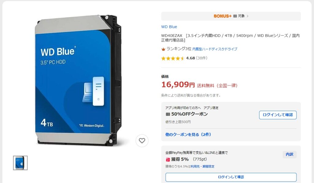 この記事を書いていて、押し入れに3年前に買った8TBの未使用ハードディスクがあったことを思い出しました。
